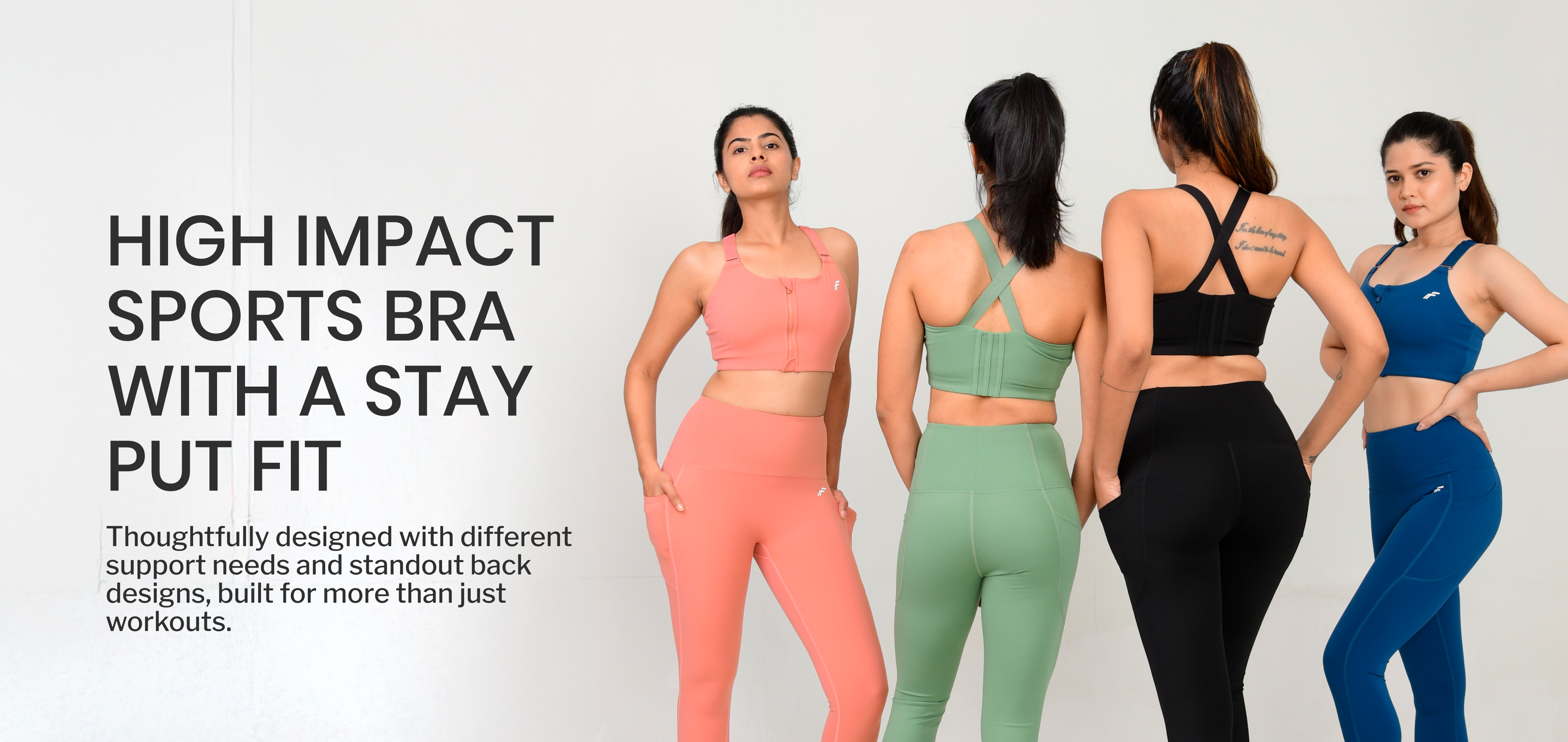 Midnight Black Versatile Sports Bra with Front Zipper, Full Coverage & Adjustable Straps